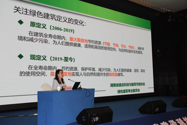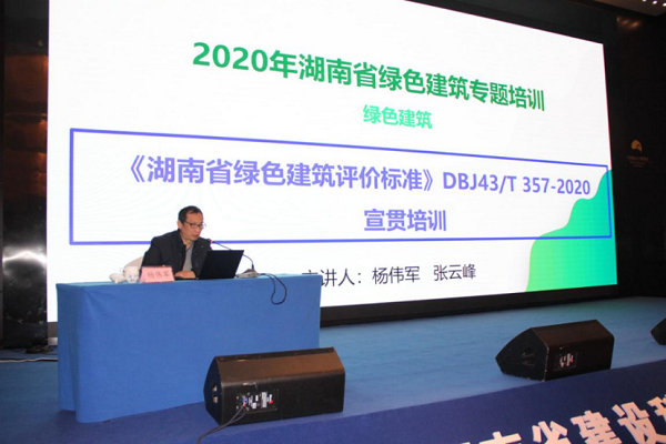 首先,湖南省建設科技與建筑節能協會、全國政協委員、長沙理工大學副校長楊偉軍給大家講解《湖南省綠色建筑評價標準DBJ43/T357-2020》(以下簡稱《標準》)的總體框架、編制說明,總則、提高與創新。他講到,我們要落實十九大精神,推動新時代高質量綠色建筑發展,修訂《標準》,就是滿足人民群眾對優質綠色建筑產品的需要,《標準》結合了本省全面推廣綠色建筑的要求,以新國標GB/T 50378-2019為主要編制依據,結合本省地域氣候等特點進行編制,適當增加了符合湖南省情的評價條文,目的就是為了規范綠色建筑評價,推動綠色建筑的發展。