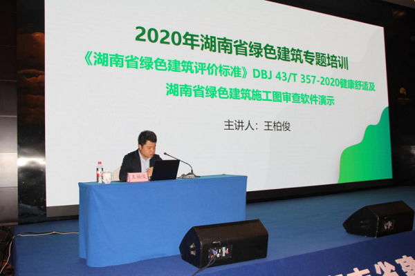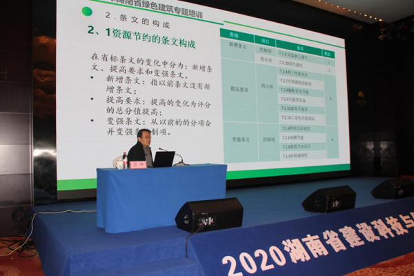 (筑博匯訊)12月10日,2020湖南省建設科技與綠色建筑行業峰會在長沙開幕,作為峰會分會之一的湖南省綠色建筑專題培訓也如期舉行,本次會議特邀請從事綠色建筑設計、審查、評價、驗收的專家給大家進行綠色建筑相關政策、標準的解讀及案例分析。會議為期兩天,全場座無虛席,來自設計、施工、審查、評價、建材等企事業單位約200余人參加了培訓會